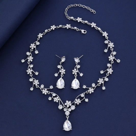 Gorgeous Waterdrop Flower Necklace Set for Women Elegant Choker Necklaces Earring Bridal Wedding Jewelry Sets Fashion
